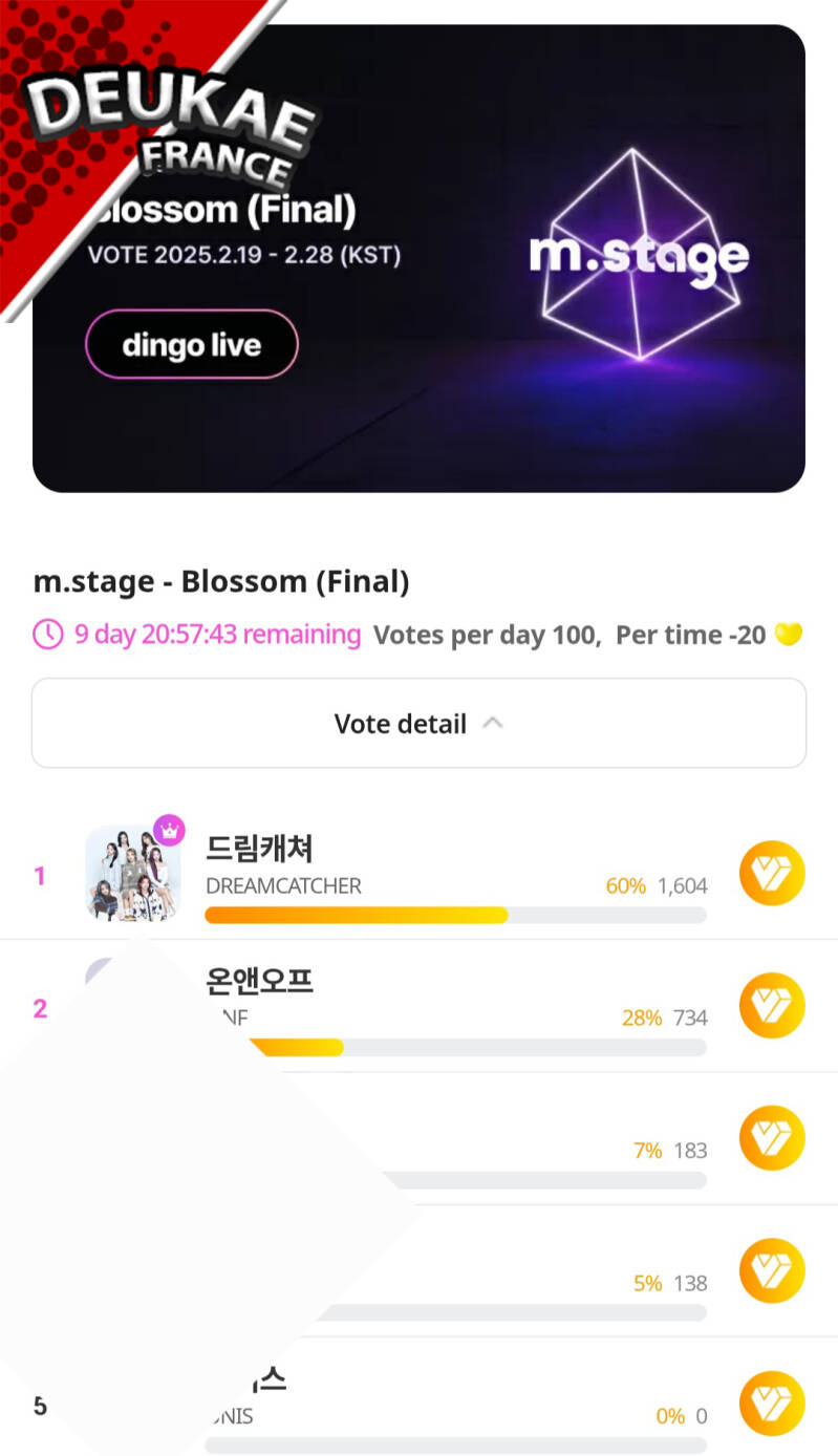 Dreamcatcher, il y a plusieurs jours, a été sélectionné pour participer au vote qui leur donne une chance de participer à une émission sur "Dingo Live"